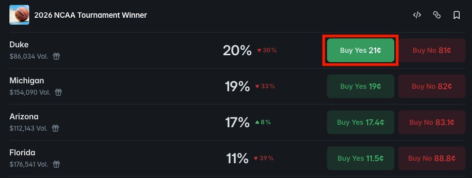 - If Duke wins it, you receive $0.79 for each contract you own.